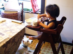 ポチが史織からおこぼれをもらうのは日常の風景になってしまった。 ポチ、お前は食べ物のためにプライドをかなぐり捨てたのか。