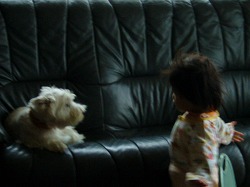 そのうち、退屈した史織がポチに突進。