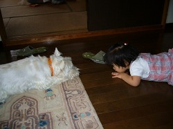 おとなしく寝ているポチに近寄って、ちょっかいを出すのはいつも史織。