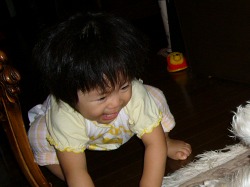 お母さんとポチが散歩に出かけている間、 お父さんとアンパンマンのゼンマイ人形で遊んだヨ。