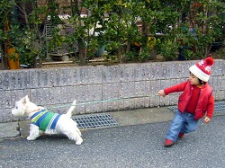 ポチと史織、絶妙のY字バランス。 拍手パチパチ