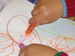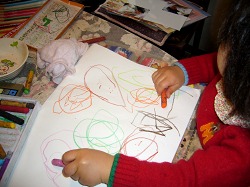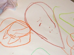 やっと、人の顔の輪郭の中に点々で目と鼻と口を描くようになった。