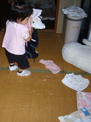 洗濯物をたたんでおくと頼みもしないのに運ぶのを手伝おうとする。