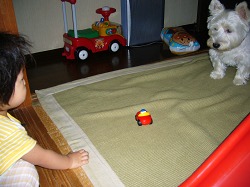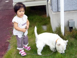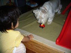昼間、お母さん以外に遊び相手はポチしかいない。