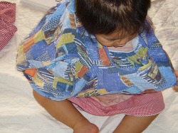 なお、パジャマのズボンは自分で履いたので前と後ろが逆さま。