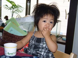 どうしてそんなに好きなの? と問い詰めたいくらい、バナナが大好き。 まだ「バナナ」とは発音できずに「ハバナ」と言う。 貴女はキューバ生まれですか? カストロ議長によろしく。