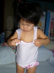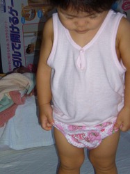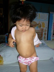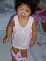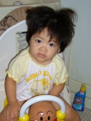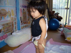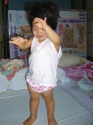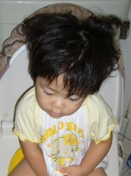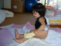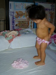 早朝の史織。 目がトロ〜ンとしてまだ頭の中は眠っている。 お母さんはよほどトイレのしつけが気になるのだろう、またまたトイレ風景を撮影。