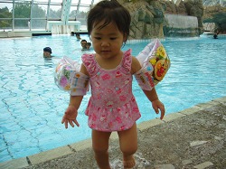 ユー君とユー君のご両親と史織とお母さんの5人で 岡山県津山市にあるグラスハウスというプール遊園地へ。 水泳がご飯よりも大好きな史織には天国のような場所。