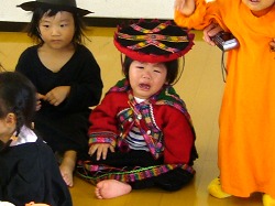 他の子たちのハロウィンの黒装束がコワイと言って大泣き。