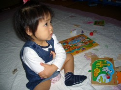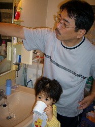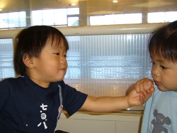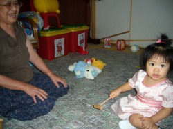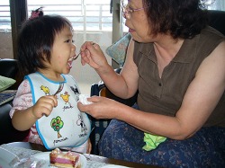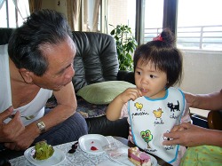 午後、(お父さん方の)おじいちゃんおばあちゃんのマンションへお祝いに。