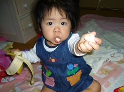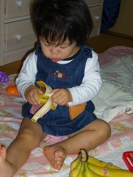 大好きなバナナを食べる史織。