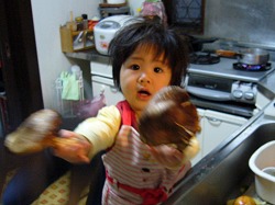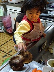 毎年のことだけど、今年も(お父さん方の)おじいちゃんから松茸(国産!)をもらった。 史織、これがあのユーメイな松茸というものだから、よく覚えておきなさい。