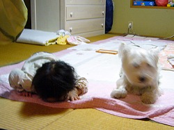 夕食後にポチと恒例の「同じポーズ」遊び。