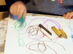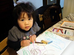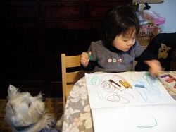 ヒマさえあれば 「いろいろ描く〜」と画用紙とクレヨンを引っ張り出す。