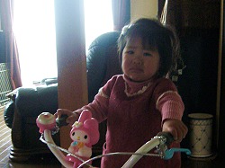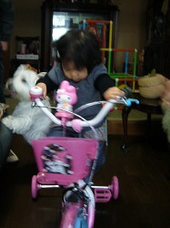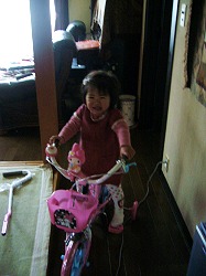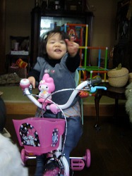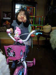今日は大安吉日だからと、少し早めの誕生日プレゼントに佐野のおじいちゃんとおばあちゃんが幼児用自転車を持ってきてくれた。