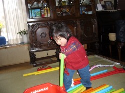 数は一応、1から10まで数えるものの、なぜかいつも5を飛ばして4の次が6になってしまう。とは言っても記憶力はそんなに悪いほうじゃないだろうと思うので、今度ためしに掛け算の九九をダメもとで教えてみるつもり。幼児期から九九が頭に入っていれば将来の学校での算数授業がとても楽になるかも知れないので。