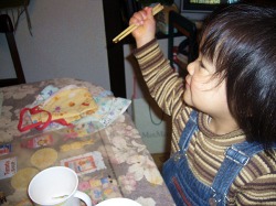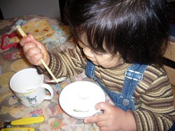 箸の持ち方を教えても