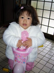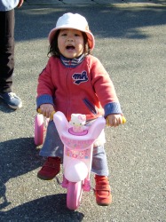 3輪車に乗って遊ぶ顔は、やっぱり2歳児。