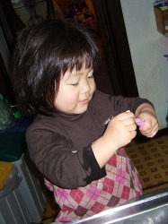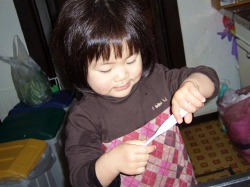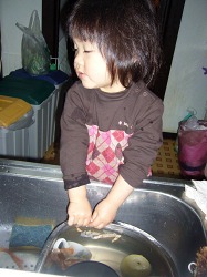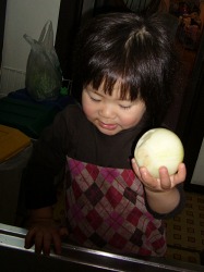 実際は 「史織がする〜」と強引にお母さんから玉ねぎを奪い取っただけ。