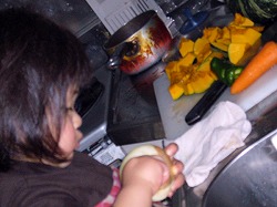お手伝いの押し売り。 でも上手に剥けているのは確か。