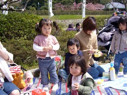カワイ音楽教室の皆で久松公園へお花見散歩。 ポカポカ陽気で絶好のお花見日和。
