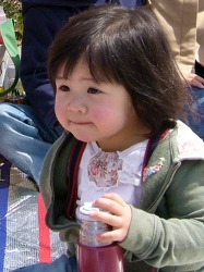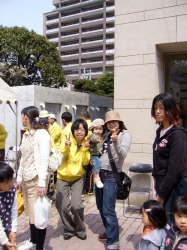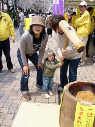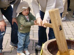 お母さんとアツヨさんと『とっとりお城まつり 2007』へ。 お母さんの水泳チームの仲間の1人が餅つきイベントを主催していた。 史織が見ているだけで収まるはずがない。 「史織がするっ!」