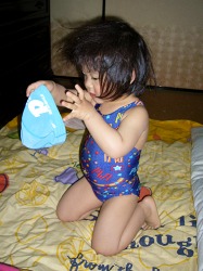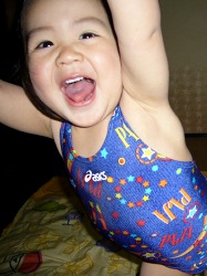 プールで他のお母さんたちから 「あー大変だ、史織ちゃんが溺れてる!」と心配して騒がれることがある。 でも、史織は水中のプールの底で目を開けてニッコリ笑いながらゴロゴロ寝転がって遊んでいるのだ。 確かに知らない人がみれば溺れて沈んでいるように見えるかも知れない。 驚異的な肺活量と水を全く恐がらない度胸のよさ。 コーチが言うように、こんな子供は珍しい部類なのかも。 競泳よりはシンクロナイズド・スイミング向きなのか、とも思う。 もしこれが才能の一つなら伸ばしてやりたい。