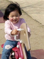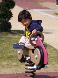 いつもの布勢運動公園の遊園地。 今日はケンちゃんと来たよ。 ユーちゃんが保育園に入ってしまい仲良し3人組が解散した4月以降、 頭脳明晰で秀才児の片鱗を見せるケンちゃんと2人で行動するようになった。 ケンちゃんに刺激されて史織ももう少し数遊びや英語遊びが上達すれば…
