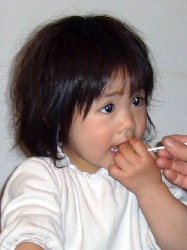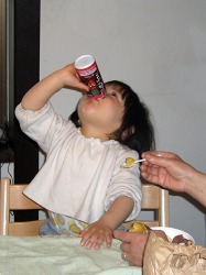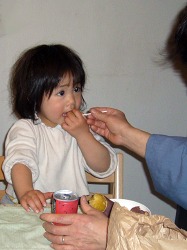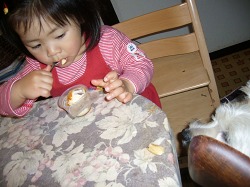 史織の焼きイモ初体験記。 もう4月も終わろうかというこの時期に家の前に焼きイモ屋さんがやって来た。 家に来ていた浜坂のおばあちゃんに熱々をフーフーしながら食べさせてもらった。