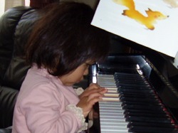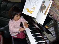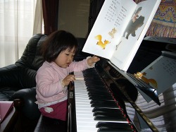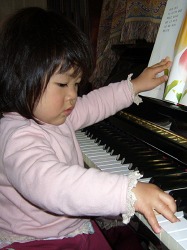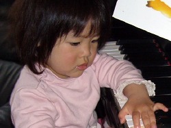 思い出したように久しぶりに弾いたピアノ。 これまでのどんな時よりも真剣な表情で。 音楽教室では先生が弾くピアノにじっと耳を傾けている。 親バカといわれようとも、手指の姿勢や指運びは2歳児と思えない。