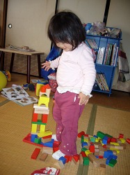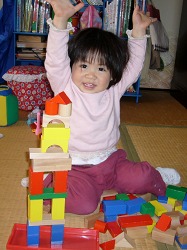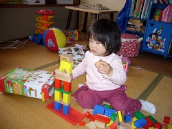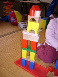 積み木の腕前があっという間に随分と上達した。初めて建物らしきものを作ったのは1週間ほど前。 今度は4階(5階?)建ての高層建築。