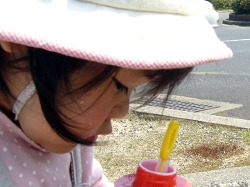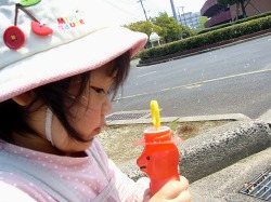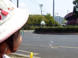 今日はシャボン玉を作って飛ばした。 シャボン玉の歌を歌いながら。 本当に屋根まで飛んで行って壊れて消えた。
