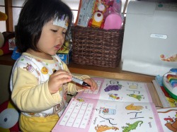 点線をなぞるアルファベットの書き取りが日増しにグングン上達して行くのが判って面白い。