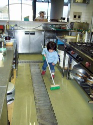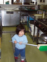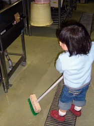 「史織ちゃん、デッキブラシの扱いが上手」と皆に誉められて調子に乗っております。