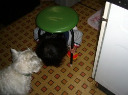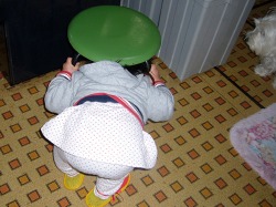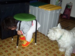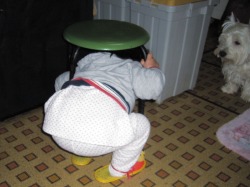 突然、小さな椅子の下にもぐり込もうとし始める史織。
