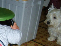 「ホントに何やってんだろ? 頭の匂いでも嗅いでやれ。 クンクン」
