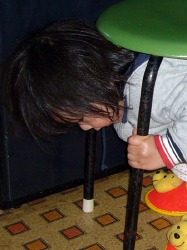 でもね〜、あのね〜、ひとこと言うとね〜、椅子の周りを回るのは 「ラウンド チェア〜」だったけど、椅子の下にもぐるのは 「アンダー チェア、ゴーゴー」だったんですけど。