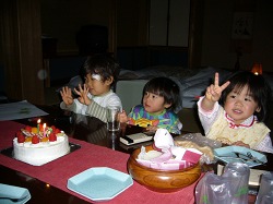 3人とも偶然にも1〜2月生まれ。 そこで今回は3人同時のお誕生日会も兼ねてケーキを持ち込み。