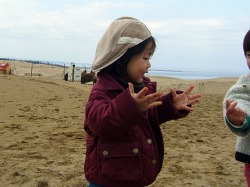 砂遊びが大好きなので、久しぶりの大きな砂場である鳥取砂丘に大喜び。
