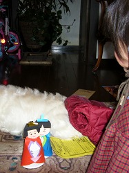 この前、ヤングプラザで作った紙製のおひな様。