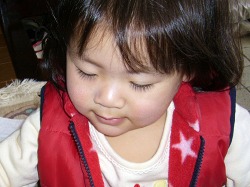 前歯の隙間にエノキ茸が挟まってしまったみたい。