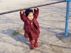 握力も腹筋もかなりのレベルに達しているので鉄棒をクリアする日も近いだろう。