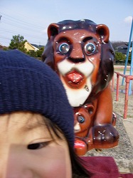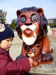 どうしてこんな気味の悪いデザインのライオン像が児童公園に置かれているのか理解不能。特に子ライオンの顔は不気味。悪い夢にでも出てきそうだ。
